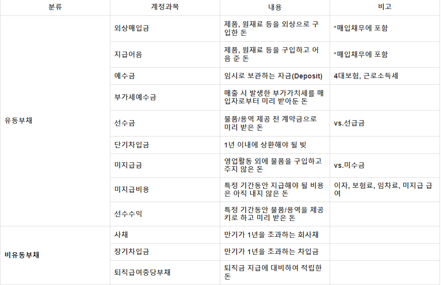 √ 재무상태표 : 부채