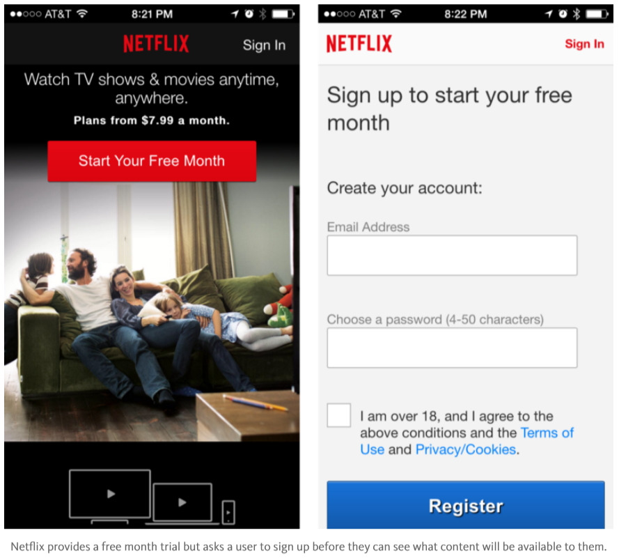 - 너무 일찍부터 가입을 강요하면, 85%이상의 유저가 사이트를 떠날 수 밖에 없습니다.