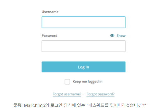 "패스워드를 잊으셨나요?" 등의 안내 문구와 관련 링크를 로그인 양식 근처에 항시 보여줘야 합니다.