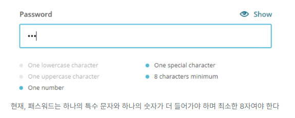 대문자, 숫자, 기호가 최소한 하나씩 들어가야 합니다" 라는 문구는 전형적인 패스워드 요구사항.