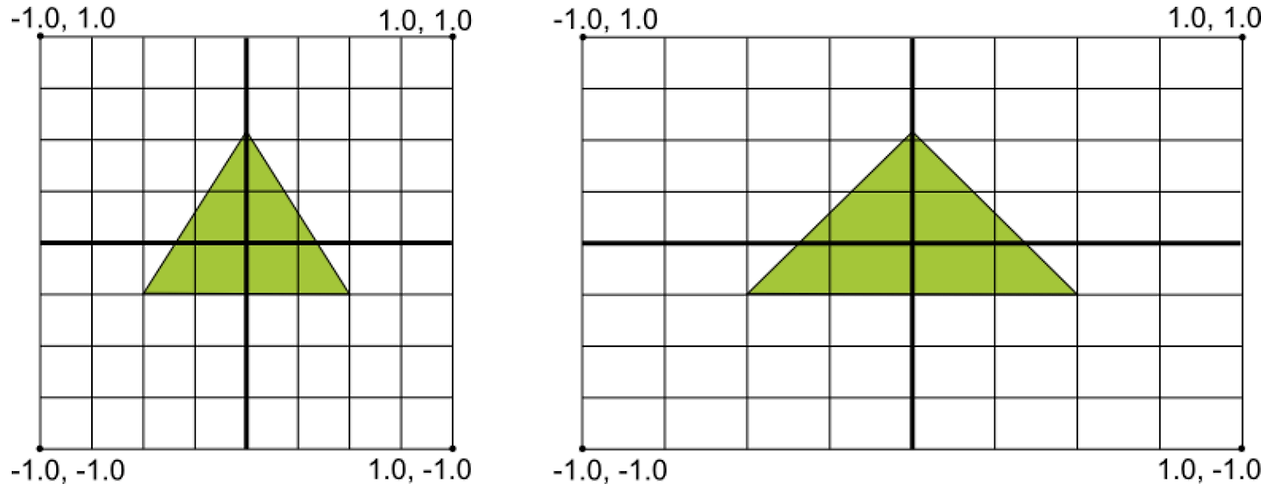 OpenGL은 가로가 넓은 스크린 비율에 매핑시 우측 사진처럼 왜곡이 발생하게 됩니다.