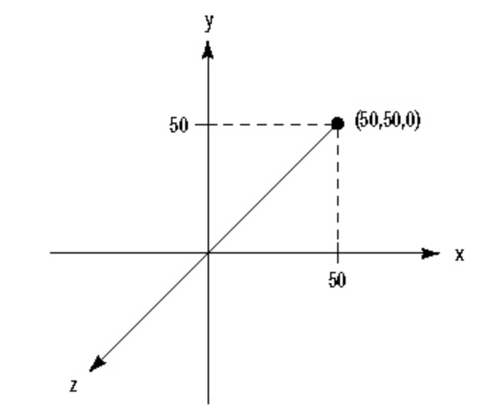 - 방향 : 원점에서 벡터(50,50,0)까지의 방향
