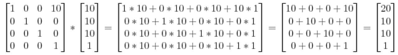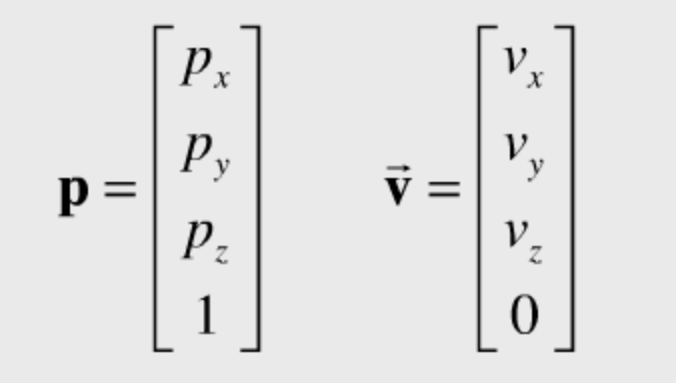 - 표현 시 w값이 1인 이유는 x, y, z 값이 나중에 w로 나뉘게 되는데 해당 값이 1이어야 값이 변하지 않기 때문.