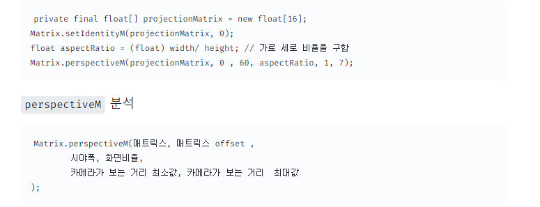 - 3차원 이미지를 2차원 평면에 그려내기 위해 사용되는 행렬입니다.