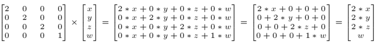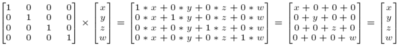 벡터(x,y,z,w)를 매트릭스와 곱해도 여전히 (x,y,z,w,)이므로 위 행렬은 단위 행렬.