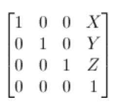 위 행렬은 x,y,z 값을 입력하면 해당 값만큼 x,y,z 축으로 이동시킬 수 있습니다.
