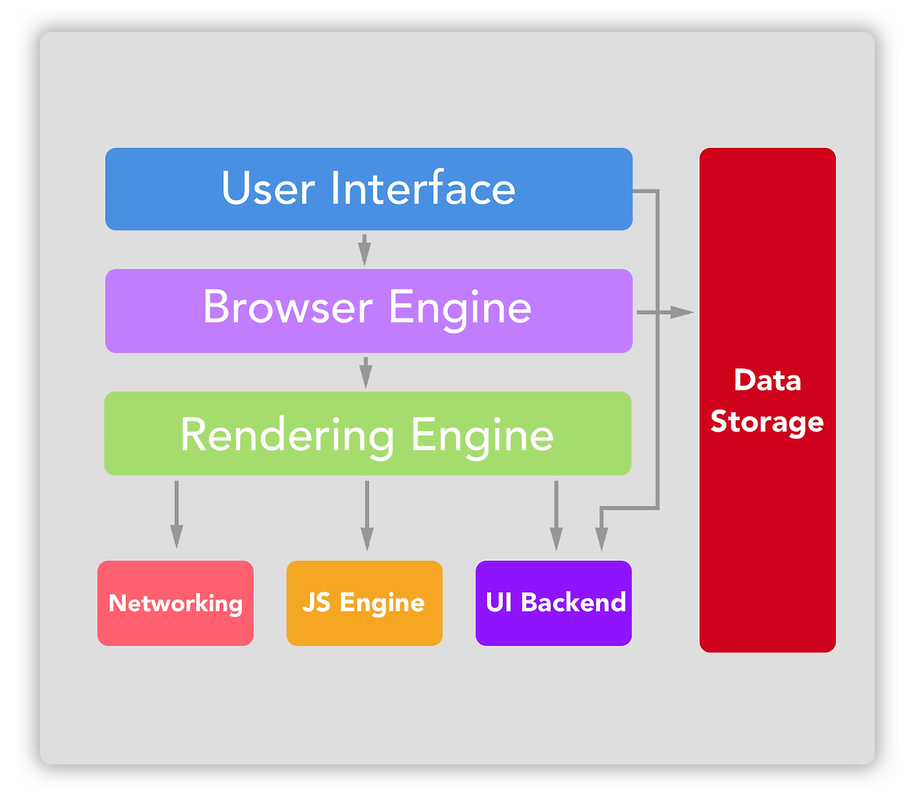 [ User Iterface, Browser Engine, Rendering Engine, Networking, Js Engine, Ui Backend, Data Storage ]