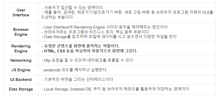 브라우저의 구성 요소에는