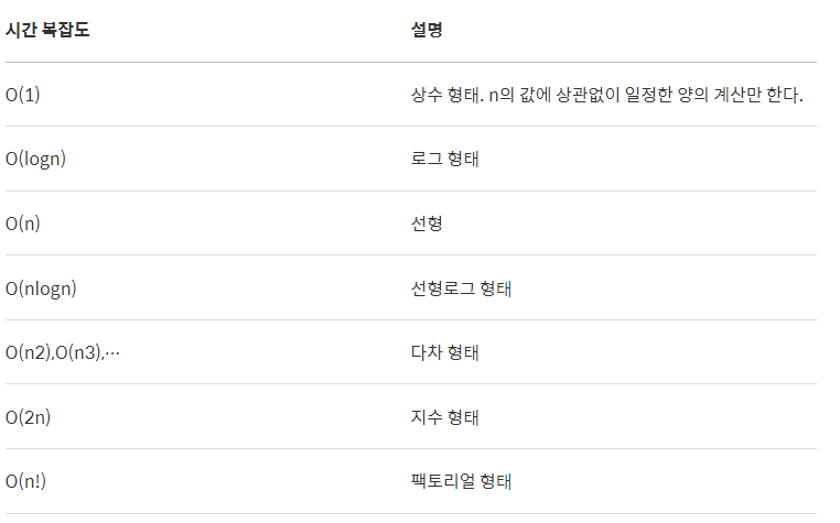- 문제를 해결하는데 걸리는 시간과 입력의 함수 관계를 말합니다.