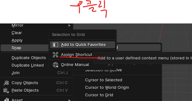 오브젝트에서, 우클릭으로 Assign Shortcut을 해주게 되면 단축키 지정이 가능합니다.