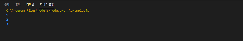 위의 코드가 실행되면, 결과는 1,2,3으로 출력될 것입니다.