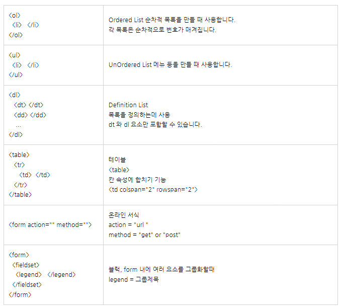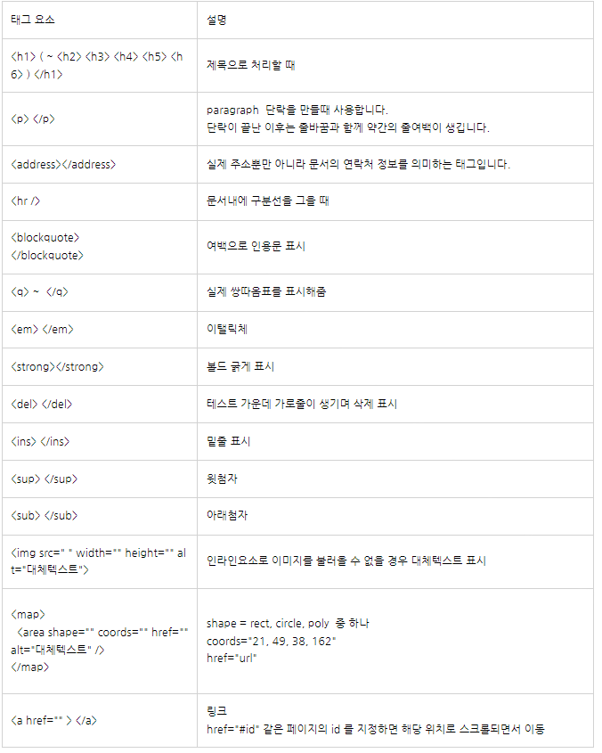 <p> , <h1>~<h5> 등은 블럭 요소이고,