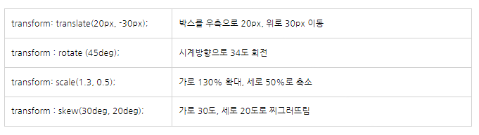 - transition은 배경, 컬러, 높이 , 폭, 변형 등의 속성에 애니메이션 효과를 부여할 수 있습니다.