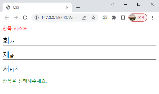 .box:after { content : "항목을 선택해주세요." ; color : green ;}
