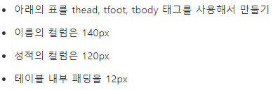 : 표에서도 행을 묶어 그룹화 할 수 있는데 thead, tfoot, tbody 태그를 사용하면 됩니다.