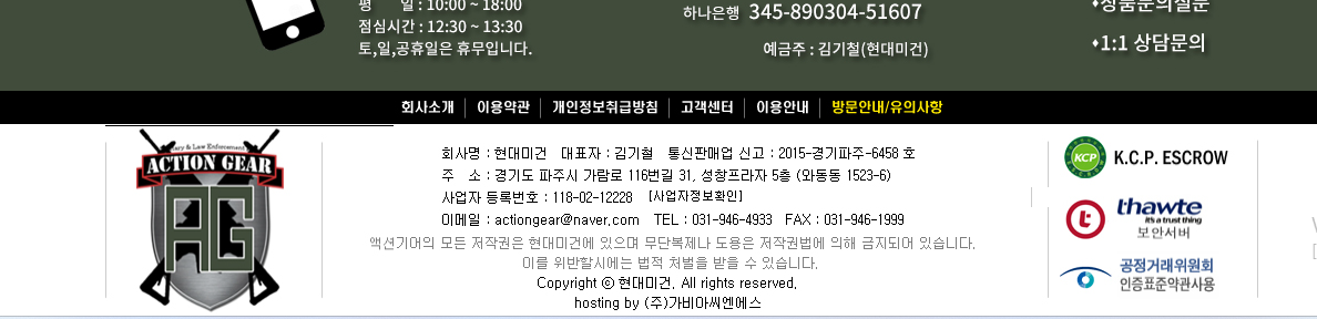 푸터에는 회사 정보, 개인정보 정책, 소셜 미디어 정보 등이 포함됩니다.