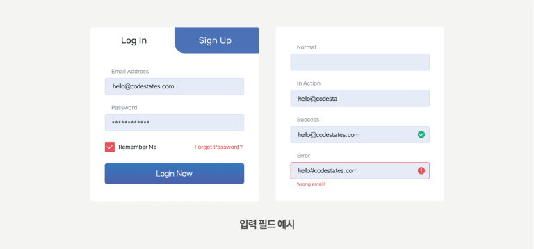 : 입력 필수 요소가 생략되거나, 정해진 양식에 맞춰 입력하지 않을 경우, 오류 상태를 표시 가능합니다.