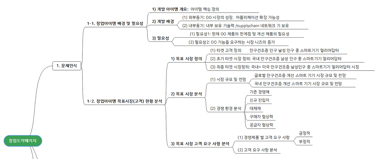 위 사업계획서 양식을 보고, 제가 작성한 마인드맵입니다. 참고로 보여드립니다.