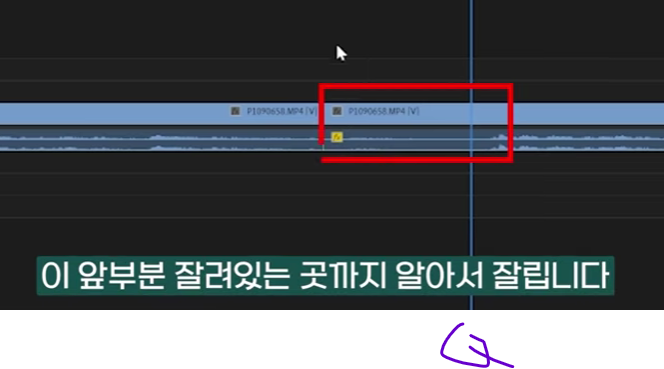 프리미어프로에서도 잘린 부분을 선택해서 지우는 방법도 있지만,