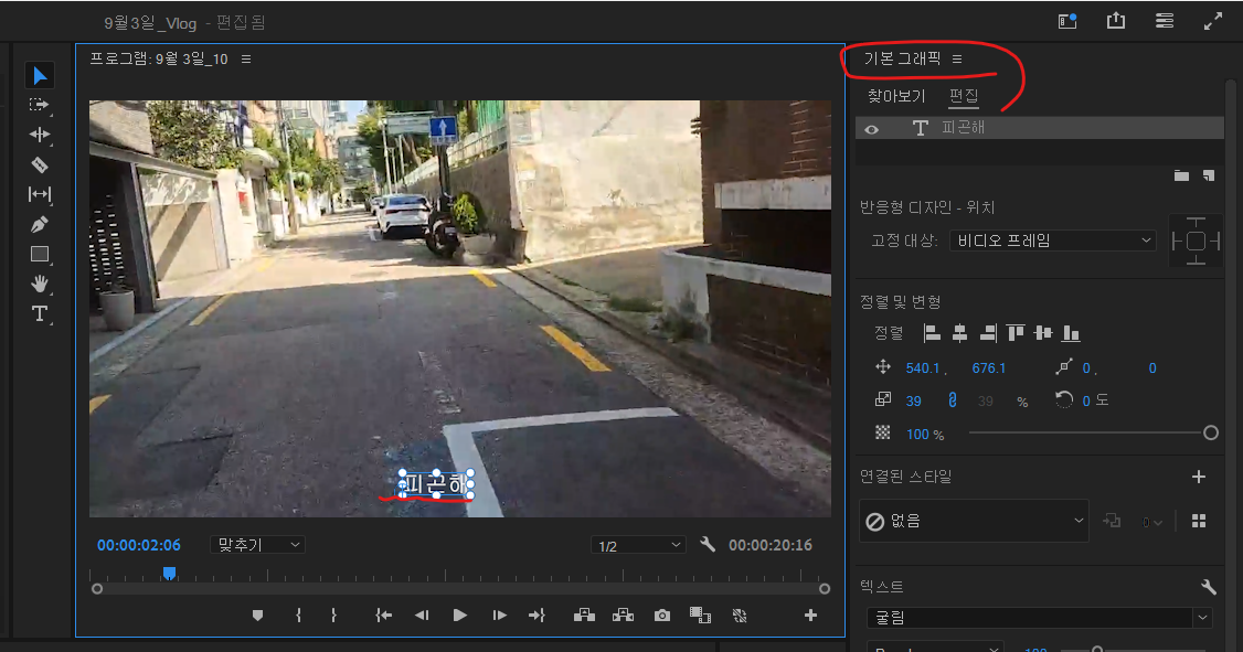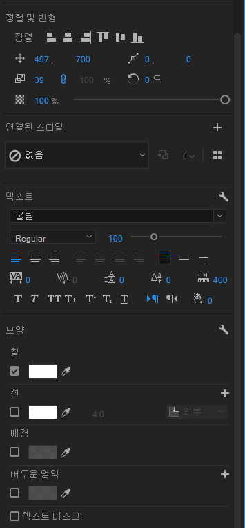 - 설정한 크기와 정렬 등의 값을 가지고 다른 컷에서 자막을 동일하게 넣고 싶다면,