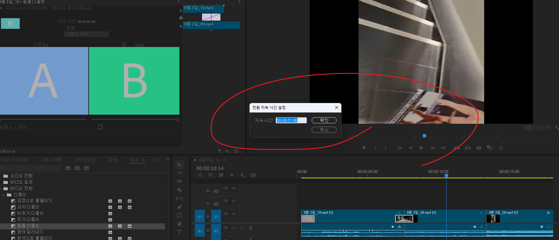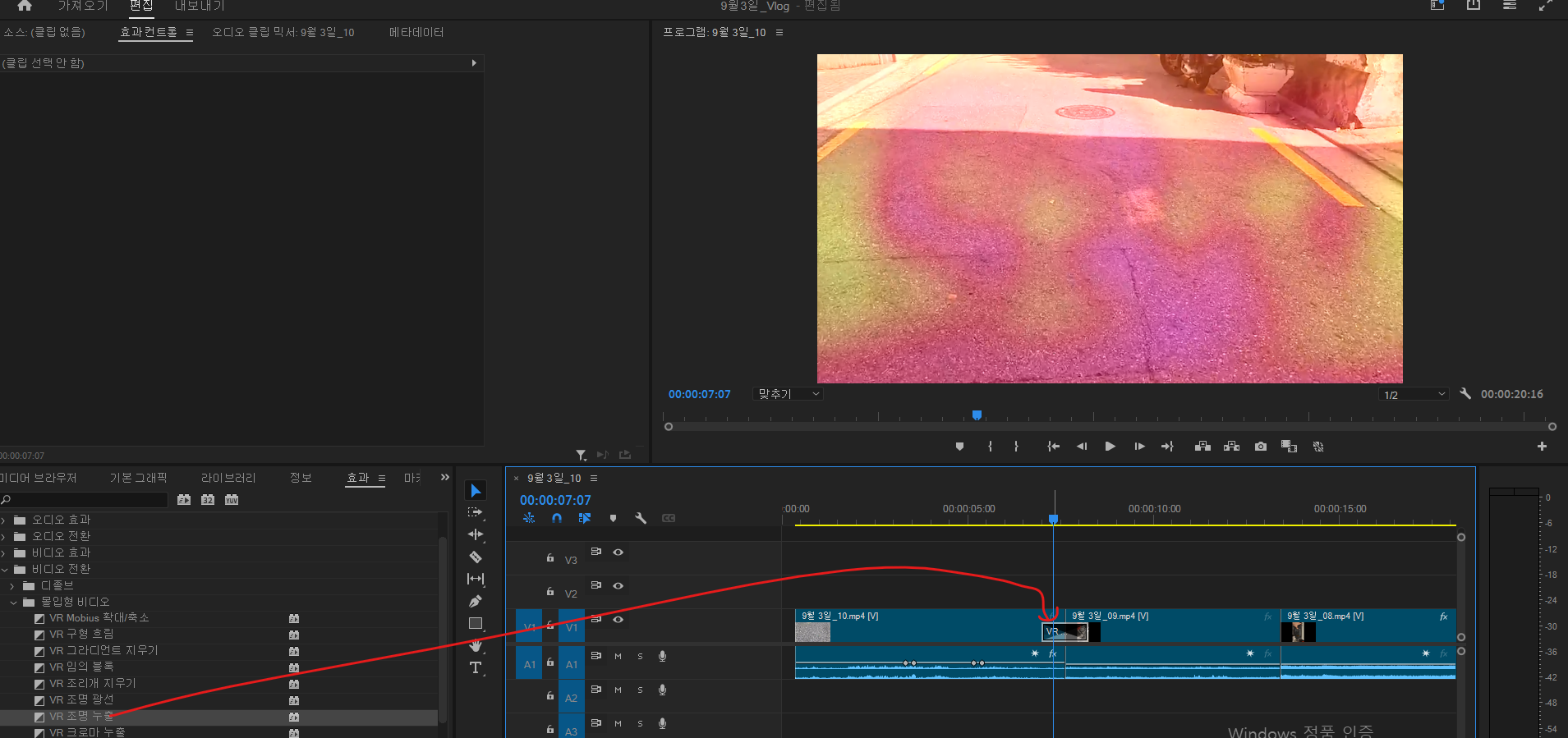 효과를 적용하는 방법은 드로그앤드랍방식으로 잘린 부분에 넣어주면 됩니다.
