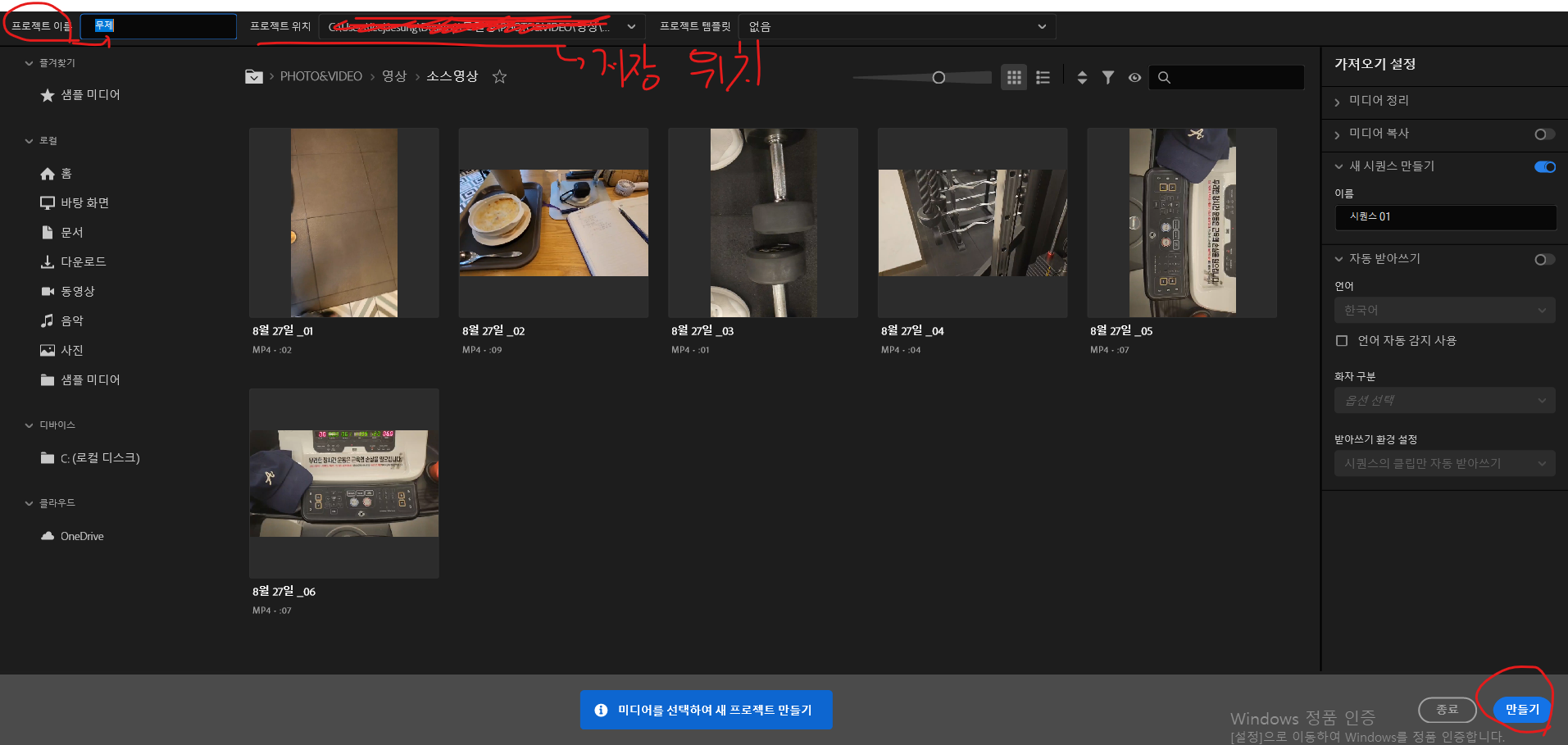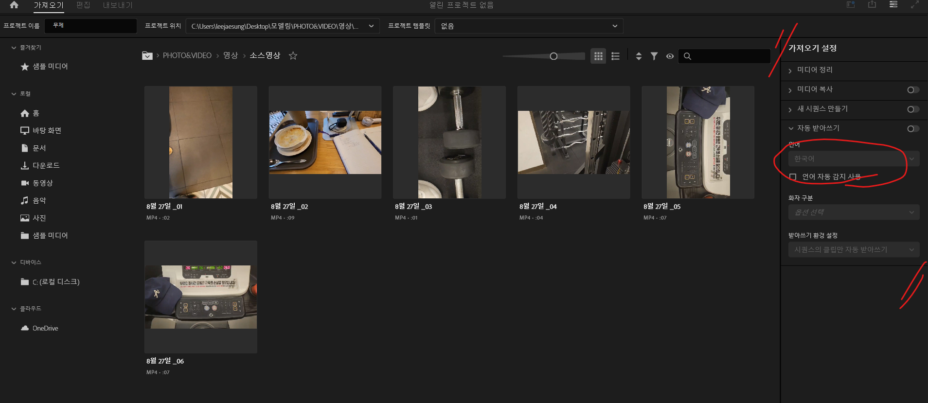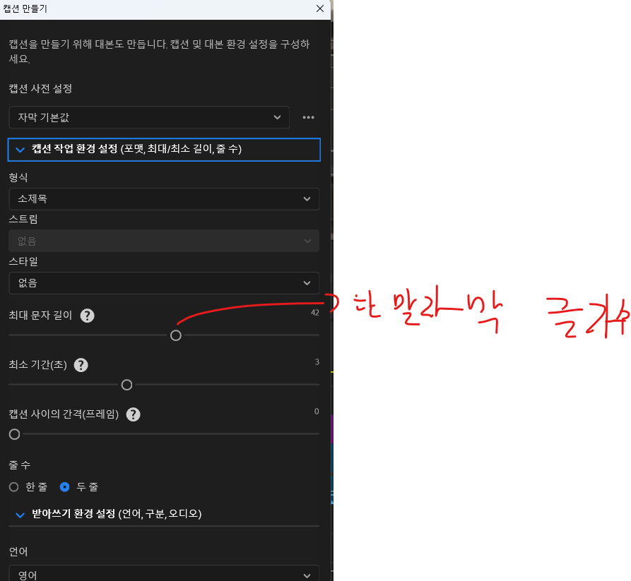 한글로 해 놓아야 추후에 AI말자막(자동 말자막) 작업을 할 때 바로 한글 자막화가 가능합니다.