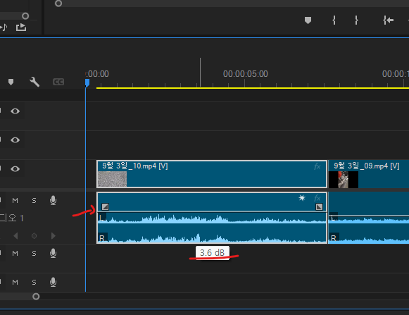 오디오의 길이 조절 역시 인디케이터를 기준으로 하는데, Shift를 누른 상태로 이동을 하게 되면,