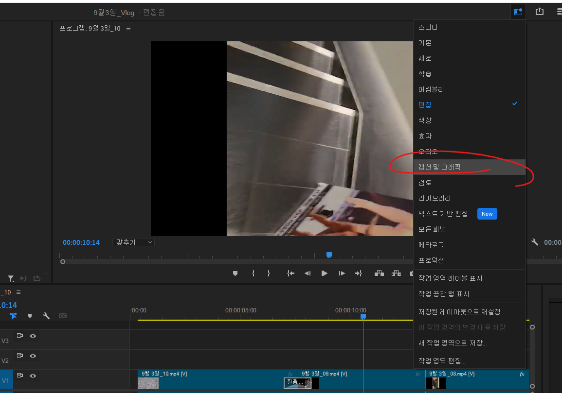 - 우측 상단 워크스페이스에서 '캡션 및 그래픽'을 선택해줍니다.