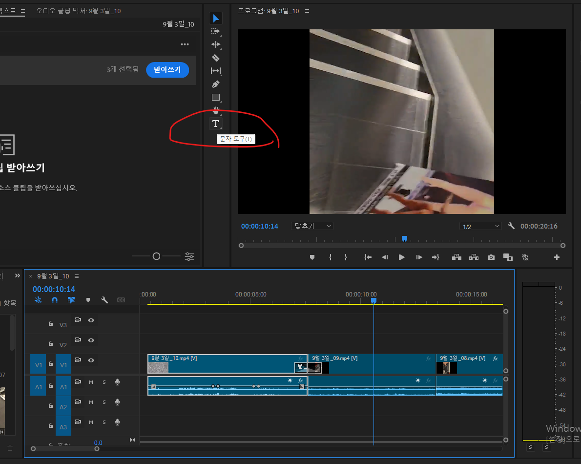 : 인디케이터가 있는 곳에서 컷편집, 자막쓰기 등등 많은 작업을 할 수 있습니다.