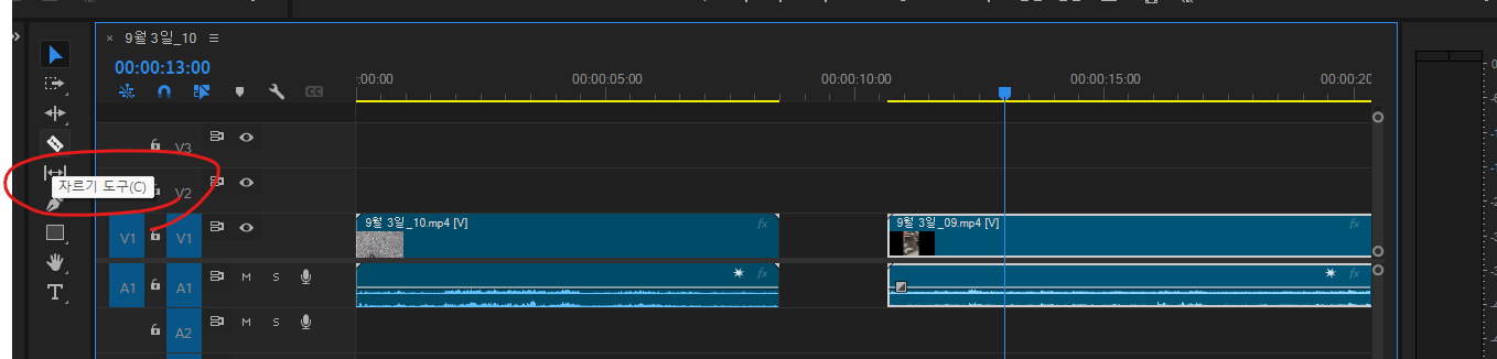 2. 컷편집(C) 버튼을 누르거나 단축키를 눌러 편집 기능을 사용해줍니다.