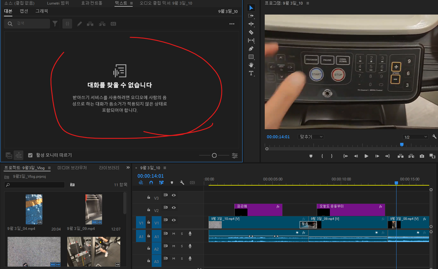 제가 사용한 영상에서는 대화가 없는 상태라 자막을 뽑을 수 없다고 나오네요.