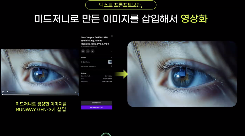 - 영상 AI[Runway]는 텍스트로 만드는 것보다, image를 넣어서 만드는게 더 효율적.