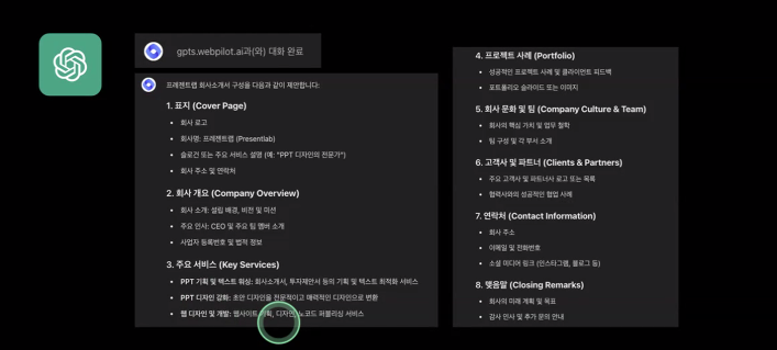ex) 프로젝트 기획 및 PPT 목차 구성.