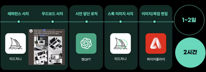 - 이미지에서의 AI 미드저니는 gpt보다 질 좋은 레퍼런스 & 코드가 중요,