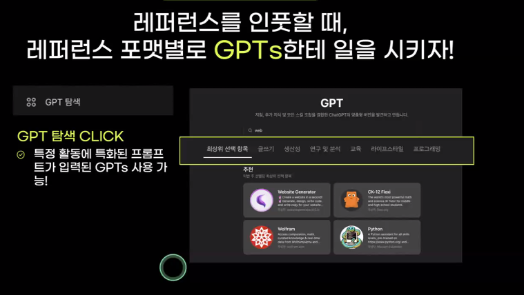 레퍼런스를 인풋할 때, 레퍼런스 포맷별로 GPTs한테 일을 시켜줘야 합니다!