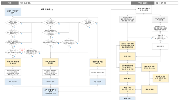 화면흐름도는 화면, 기능 단위로 사용 동선 설계.