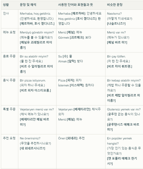 | [ 제 2외국어 : 터키어 ] 터키어 기초 공부 4 : 상황 별 대화 1 (0) | 2024.10.16 |