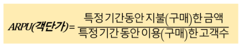 +) ARPU( Average Revenue Per User ) : 객단가