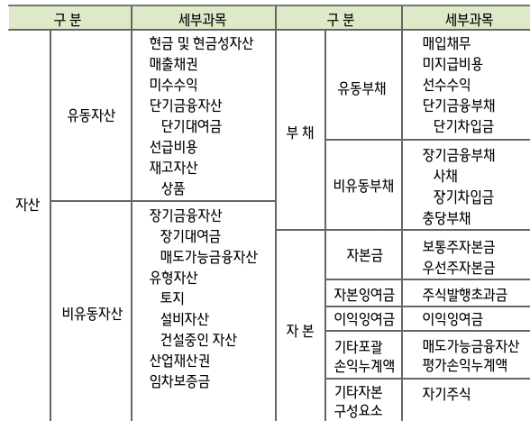 2) 구성 : 자본금, 자본잉여금, 자본조정, 기타포괄손익누계액, 이익잉여금