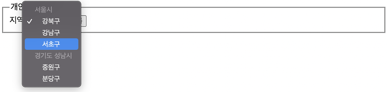 - optgroup 태그로 항목들을 그룹 지을 때, 반드시 label 속성으로 그룹명을 지정해야 합니다.