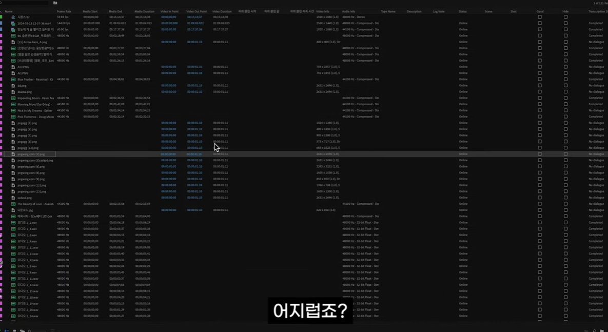 ∇ 프로젝트 패널, 타임라인 정리는 기본.